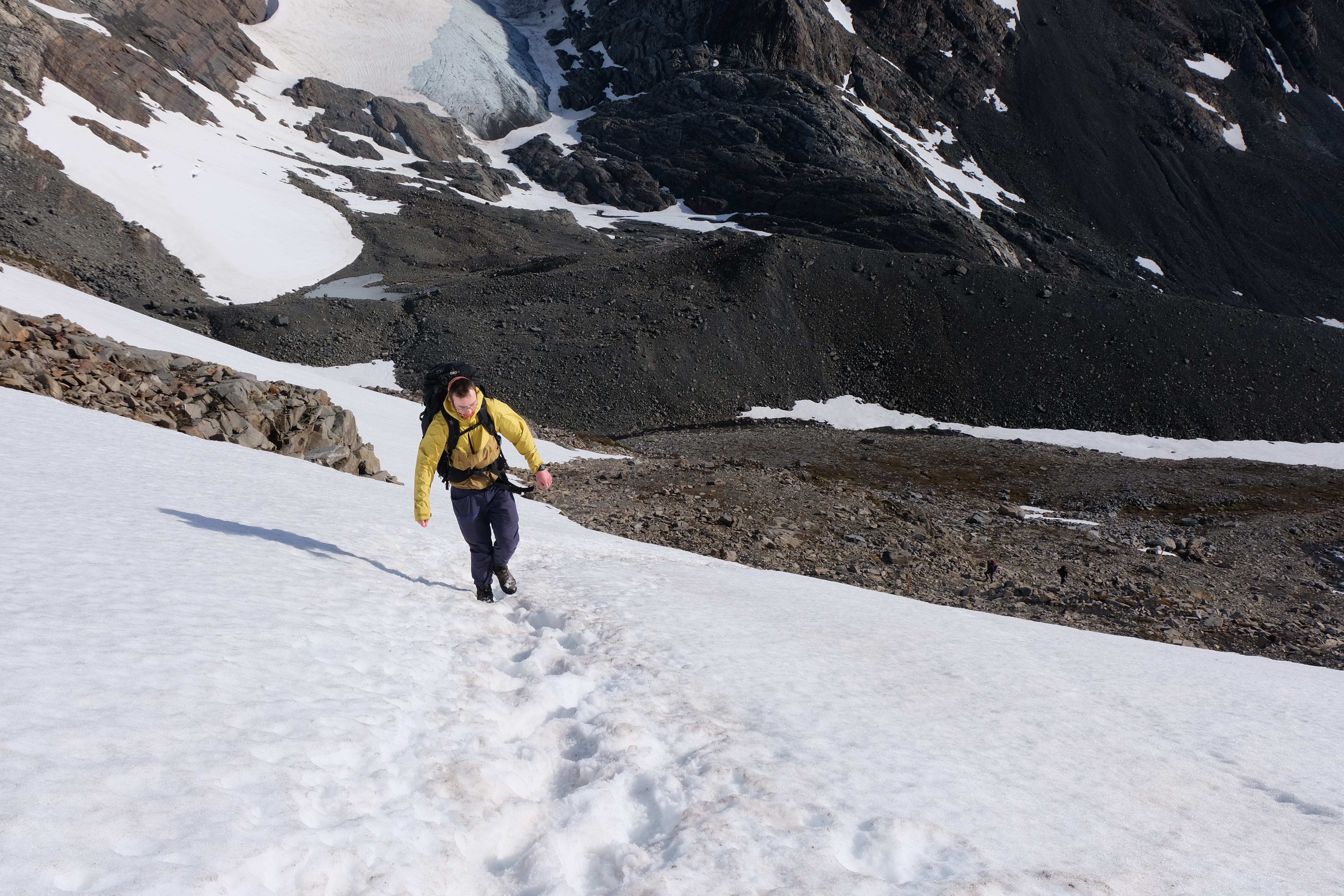 Bratt snøskavl på vei opp til Paso John Gardner.