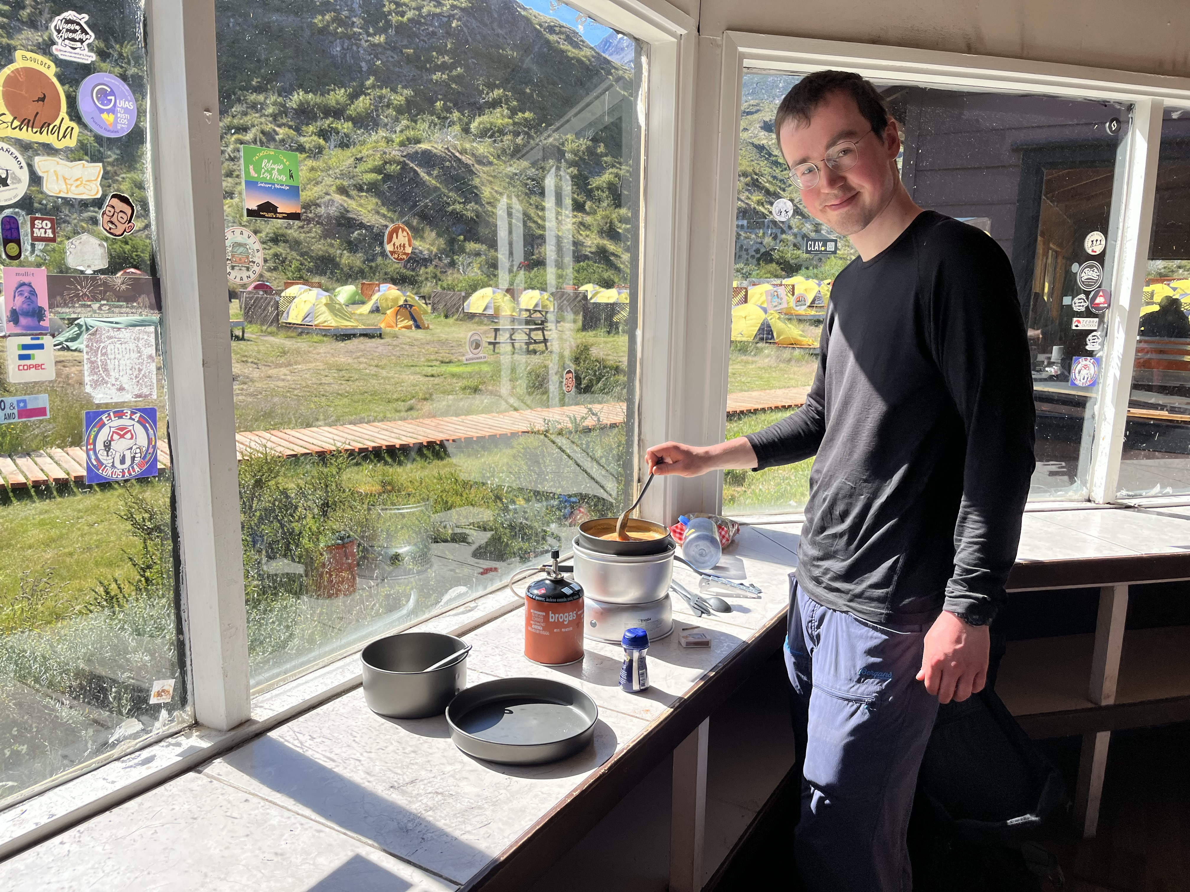 Sigurd lager mat på Paine Grande.